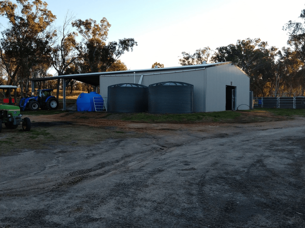 Water: 34-35″ average annual rainfall. Solar equipped 1500gln/hr soft water bore reticulating via header tanks to trough system throughout the majority of the property. Permanent Saveall Creek and other seasonal creeks traverse the property as well as several permanent dams. 4 x 25000L catchment tanks on main shed with other rainwater tanks on house and other buildings. All tanks can be filled from bore if required.